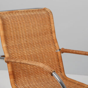 Ludwig Mies Van Der Rohe Vintage lænestol samt skammel af rattan og forkromet stål