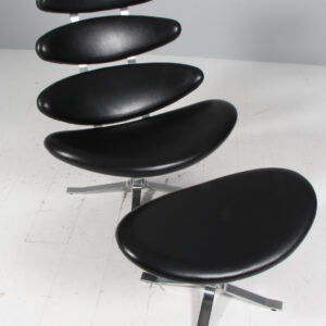 Poul M. Volther lænestol samt skammel af stål og semi anilin læder, model Corona