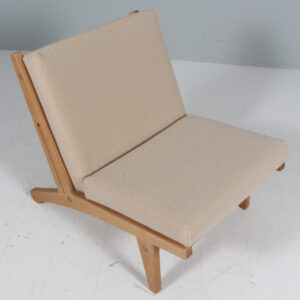 Hans J. Wegner højrygget lænestol model GE375, olieret eg og uldstof