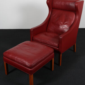 Børge Mogensen. Øreklapstol med skammel, model model 2204/2202. Original betrukket