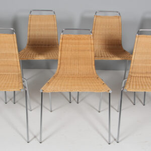 Poul Kjærholm sæt på syv stole af stål og peddigrør. Model PK1
