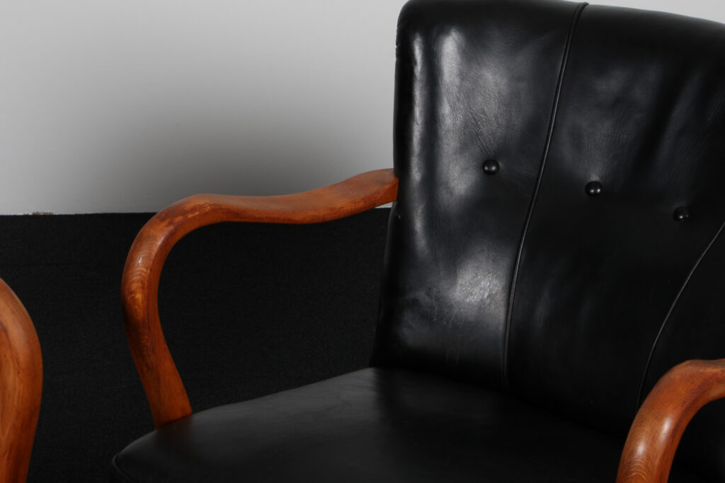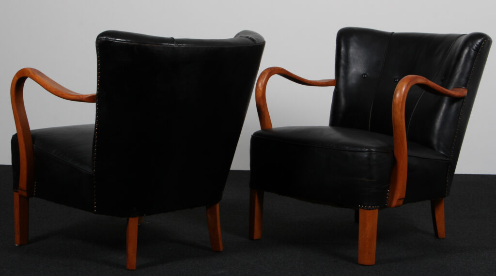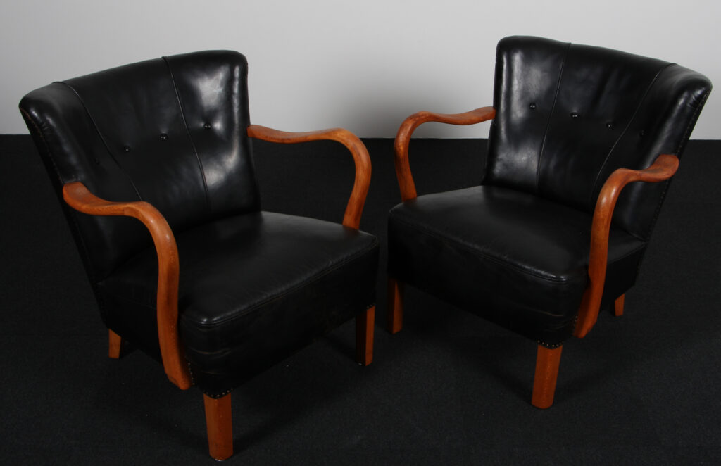 Alfred Christensen par lænestole af bøg og patineret læder. 1950’erne