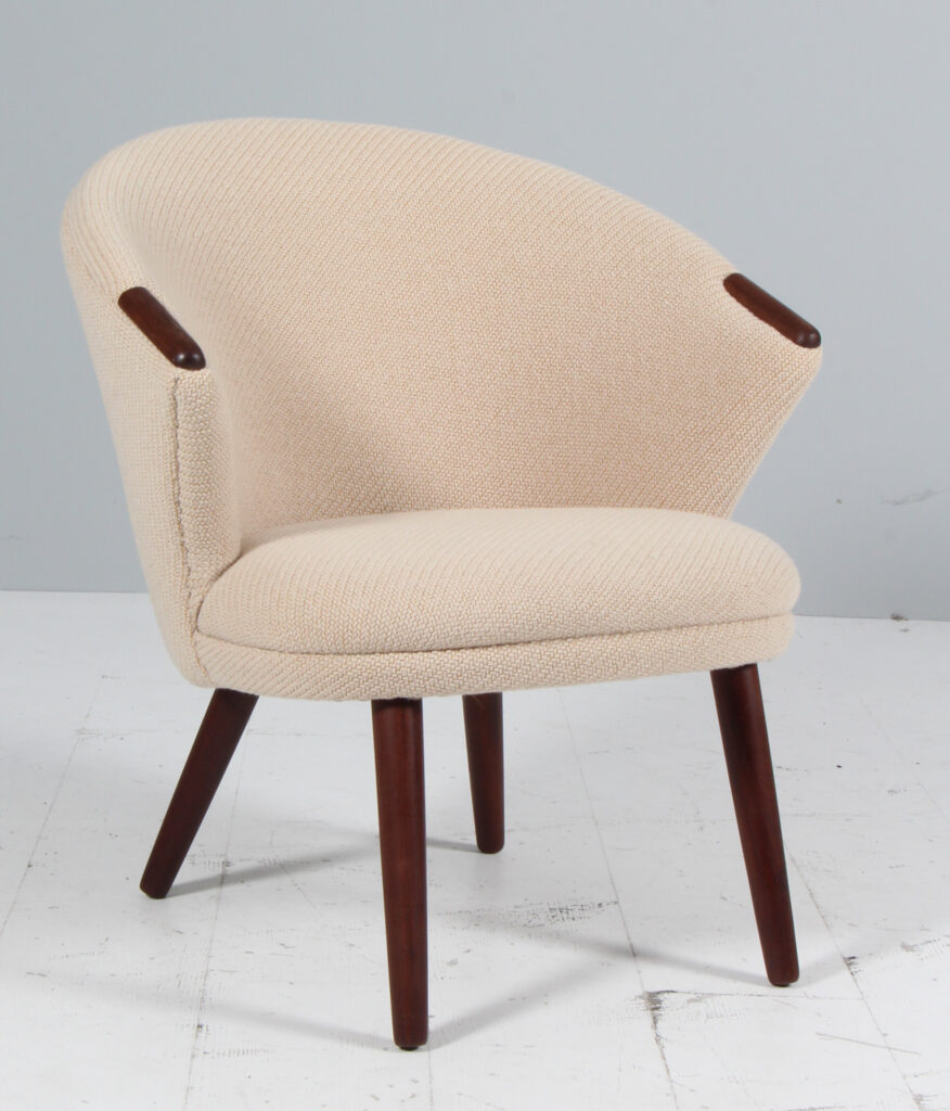 Bent Møller Jepsen lænestol med ben af teak, negle af teak. Nybetrukket med Coda 2 fra Kvadrat. Model Tv stol. H. 74/42 B. 70 D. 70 cm.