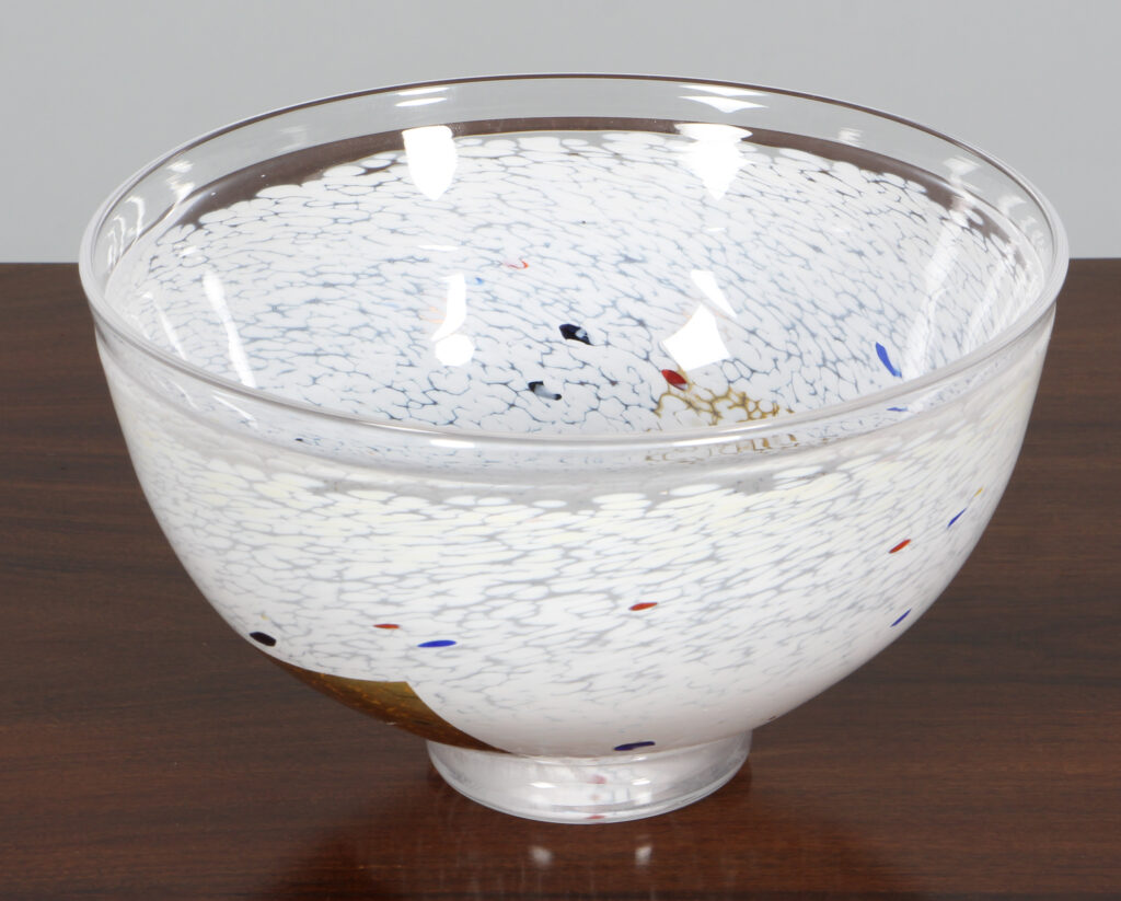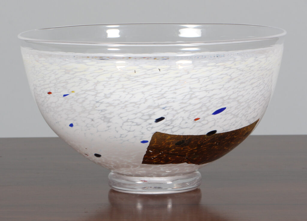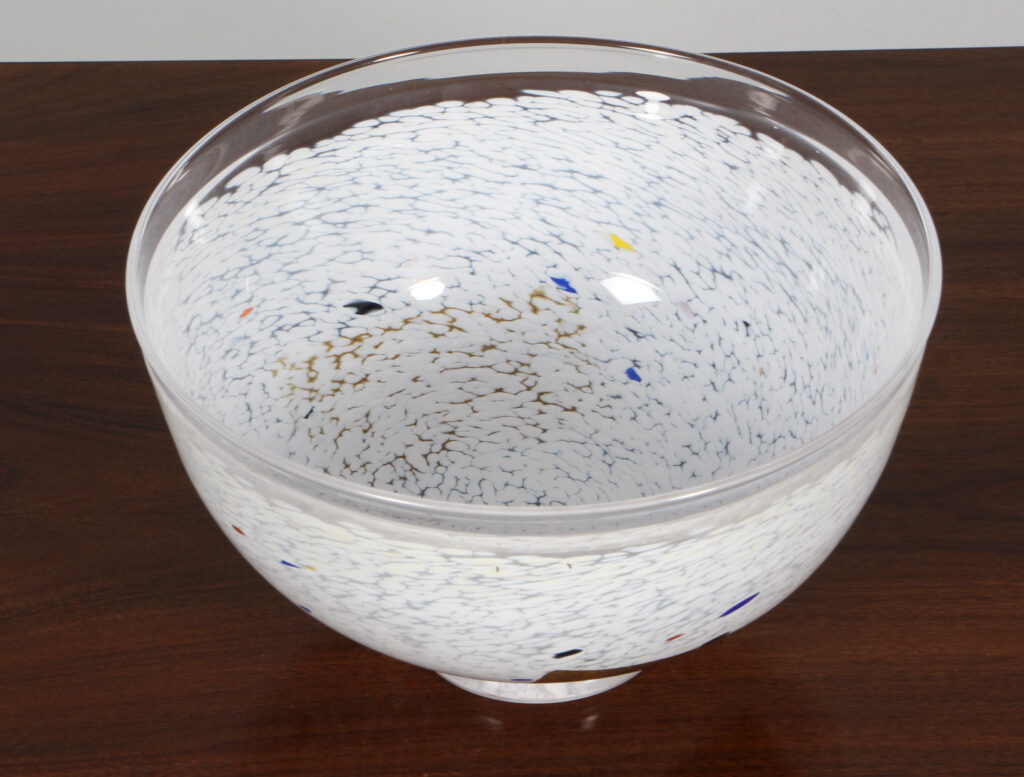 Bertil Vallien for Kosta Boda skål af glas. Model Conffetti, fremstillet hos Kosta Boda. H. 13 Ø. 21 cm.