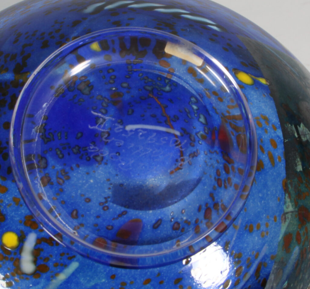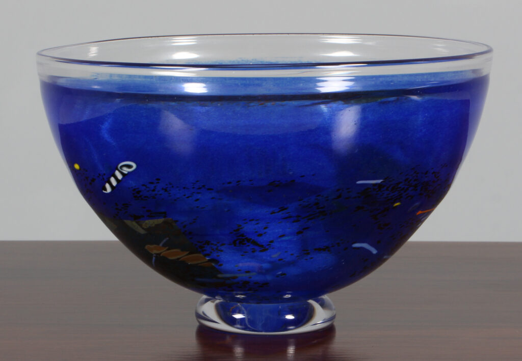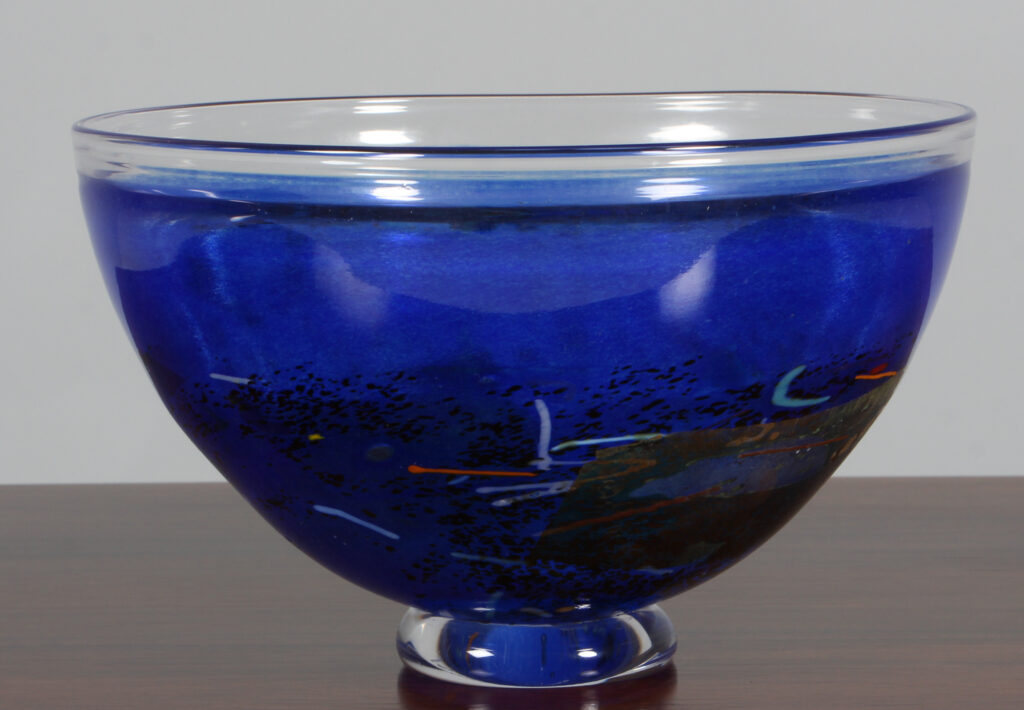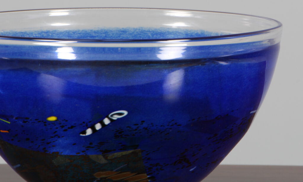 Bertil Vallien for Kosta Boda skål af glas. Model Conffetti, fremstillet hos Kosta Boda. H. 13 Ø. 21 cm.
