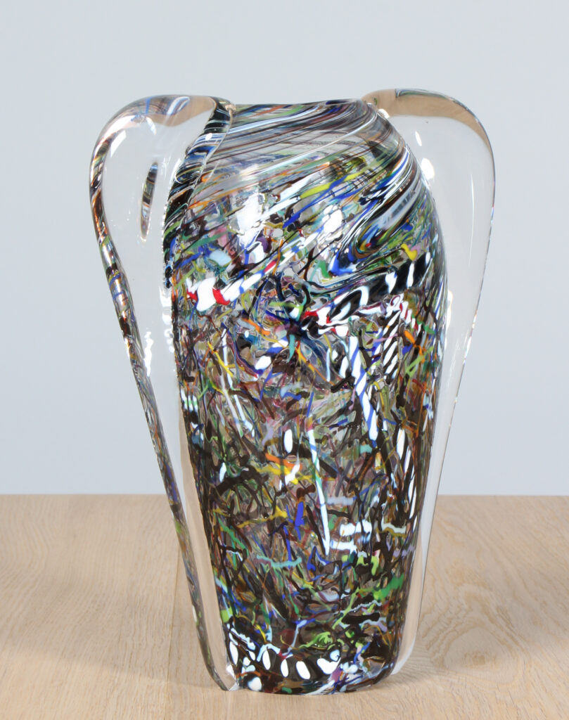 Bertil Vallien for Kosta Boda vase af glas. Model Conffetti, fremstillet hos Kosta Boda. H. 24 B. 18 D. 10 cm.