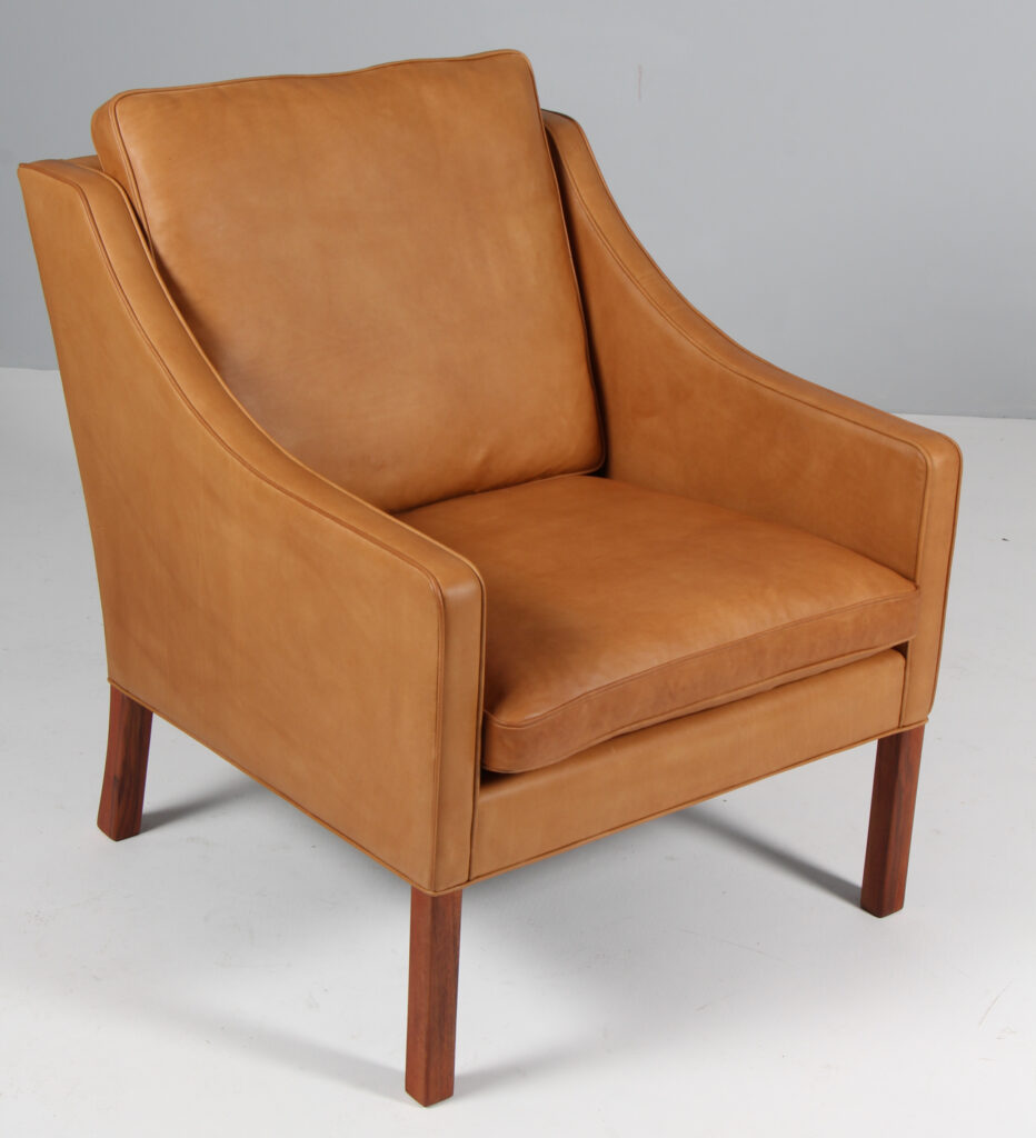 Børge Mogensen 1914-1972. Lænestol, model 2207, løse hynder med polydunsfyld, betrukket med vintage anilin læder. H. 80 B. 70 sædehøjde 42 cm. Fremstillet hos Fredericia Stolefabrik, formgivet 1972. Modelfoto, leveringstid kan forekomme