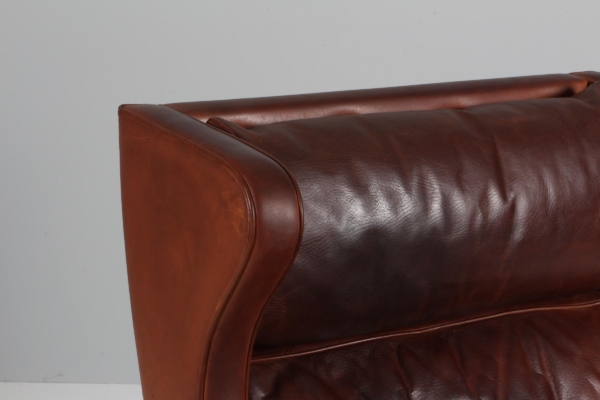 Børge Mogensen øreklapstol, model 2204. Original patineret læder