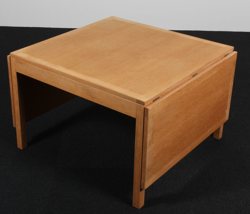 Børge Mogensen sofabord af eg med klapper. Model 5362, fremstillet hos Fredericia Furniture. H. 55 B. 80 L. 80 +2x 50 cm