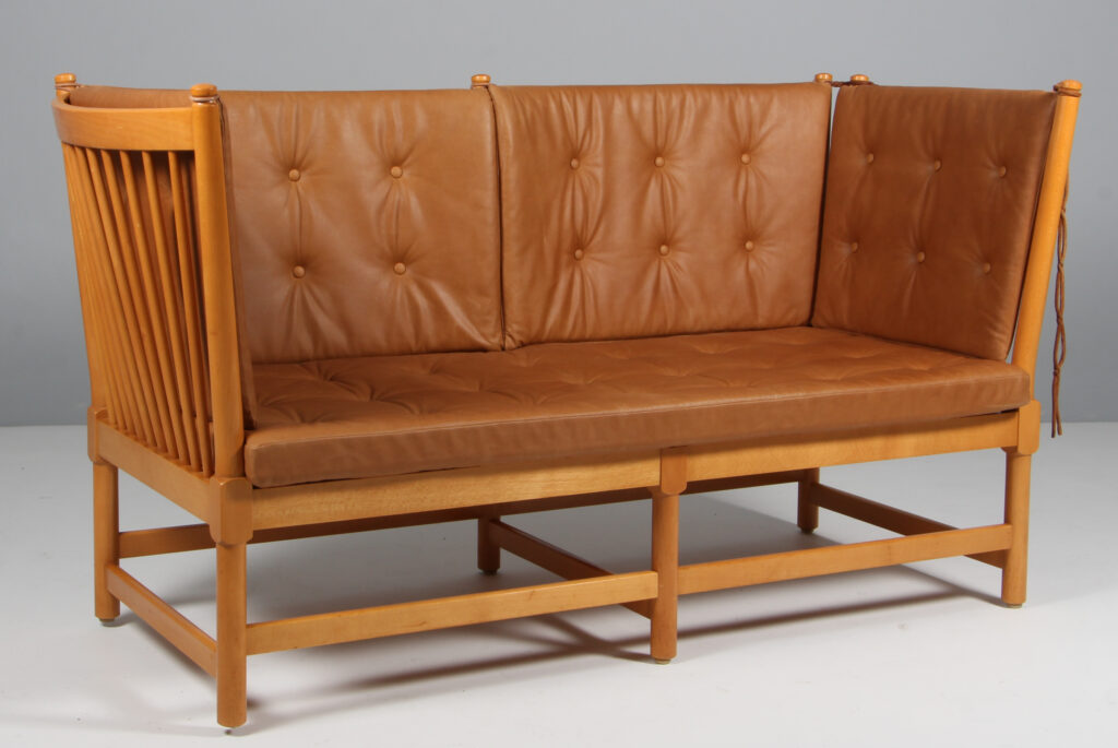 Børge Mogensen Tremmesofa stel af bøg og anilin læder. Model 1789