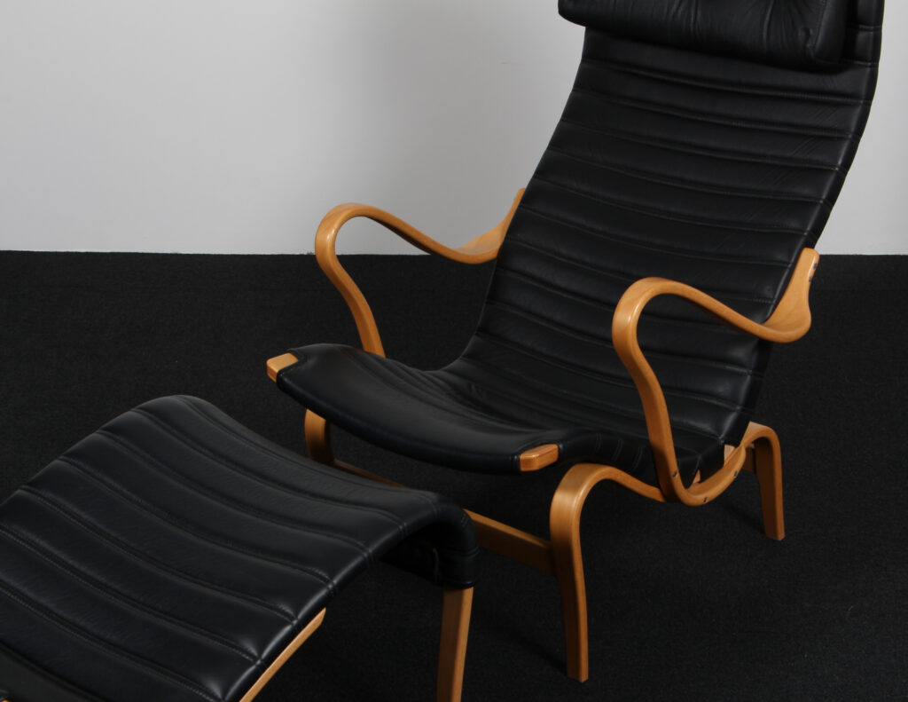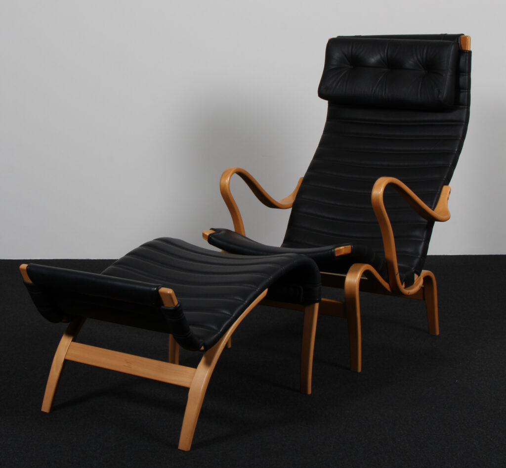 Bruno Mathsson Pernilla 2 lænestol samt skammel, bøg og læder