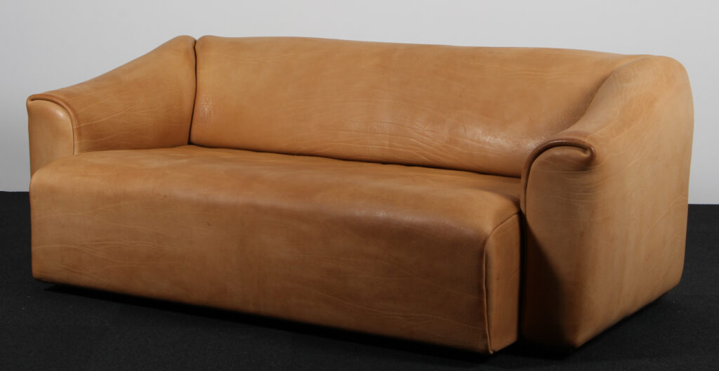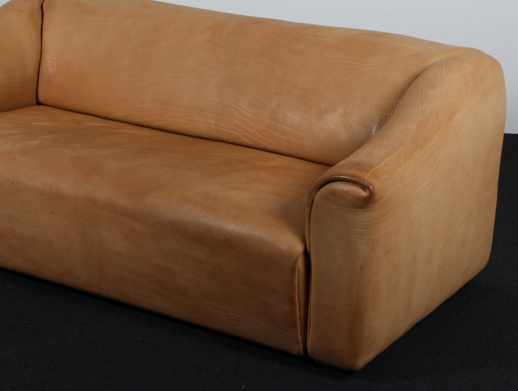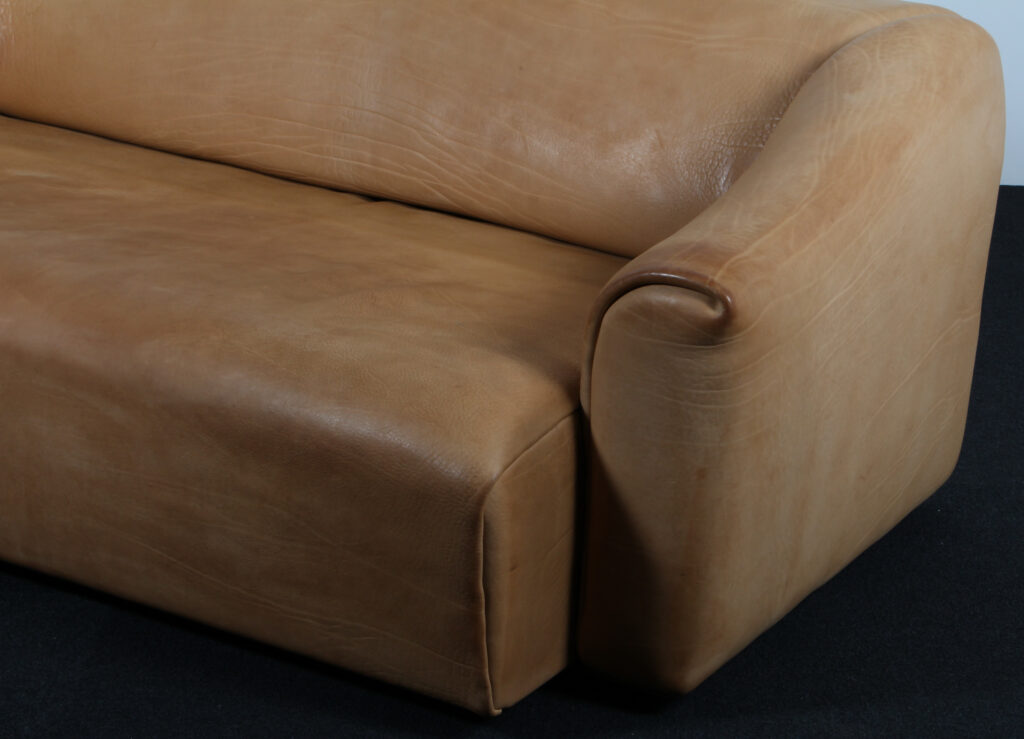 De Sede tre personers sofa betrukket med patineret kraftig neck læder. Med udtræks funktion. Model DS 47 fremstillet hos De Sede. H. 70/42 B. 180 D. 90 cm.