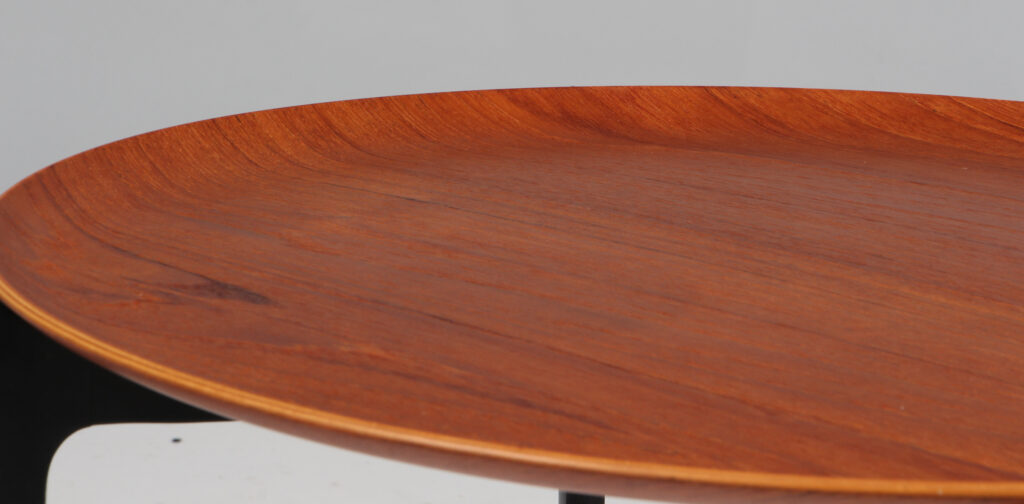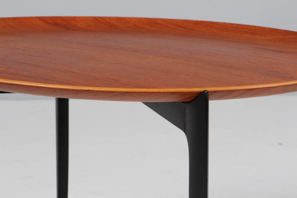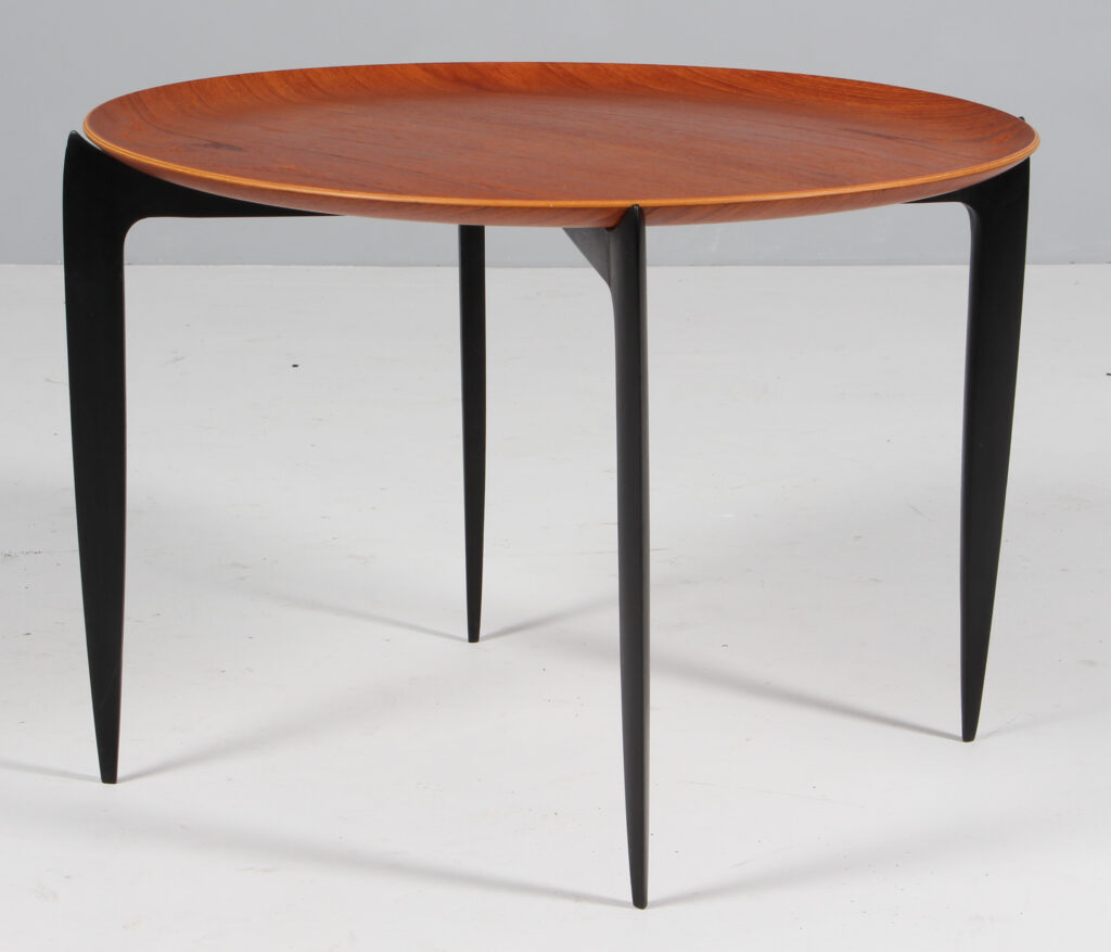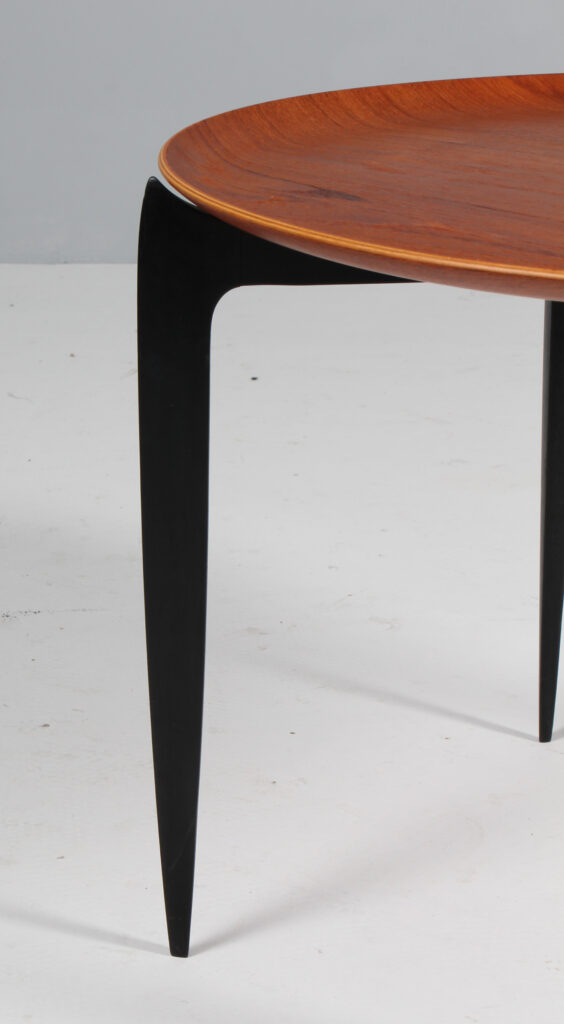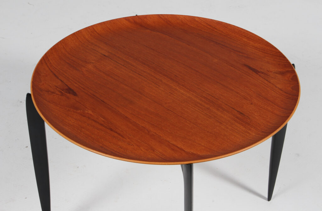 H. Engholm & Svend Åge Willumsen bakkebord med plade af teak. Sortlakeret stel. Fremstillet hos Fritz Hansen. H. 42 Ø. 60 cm.