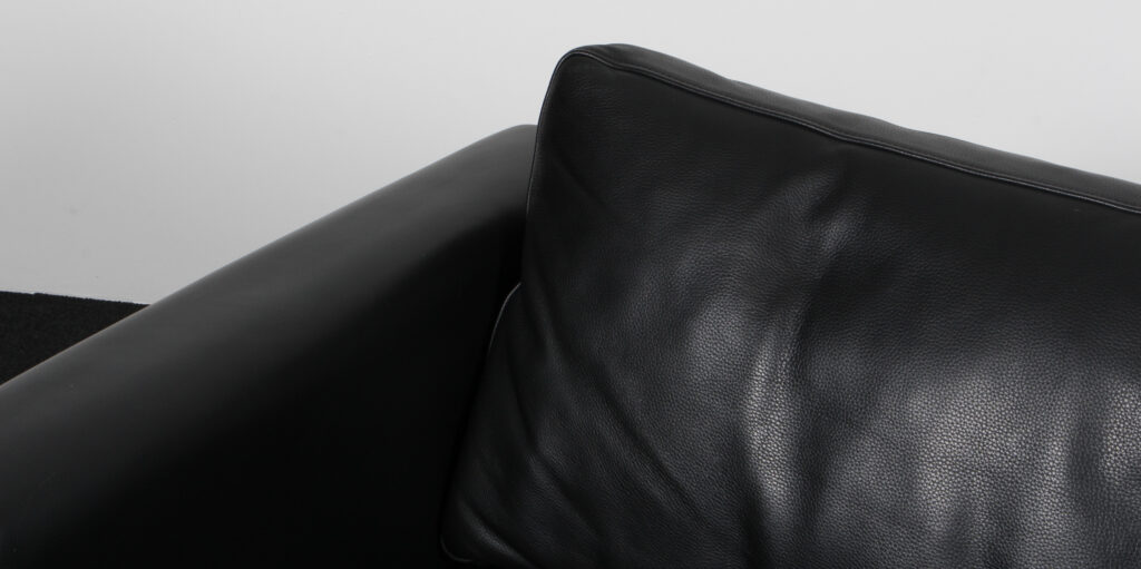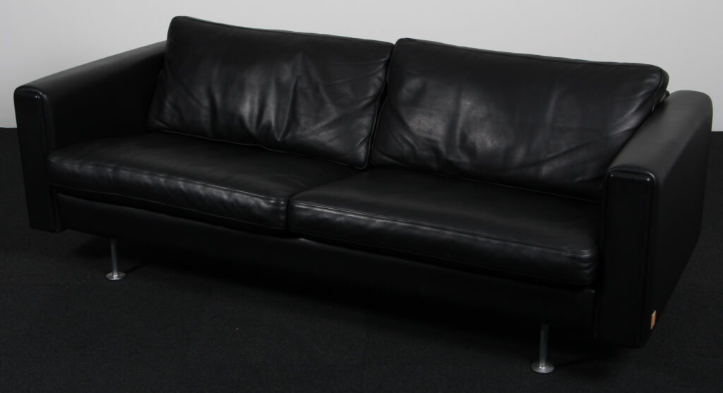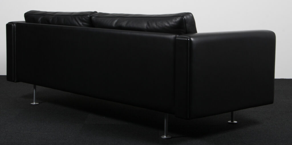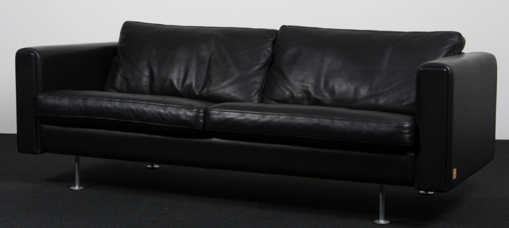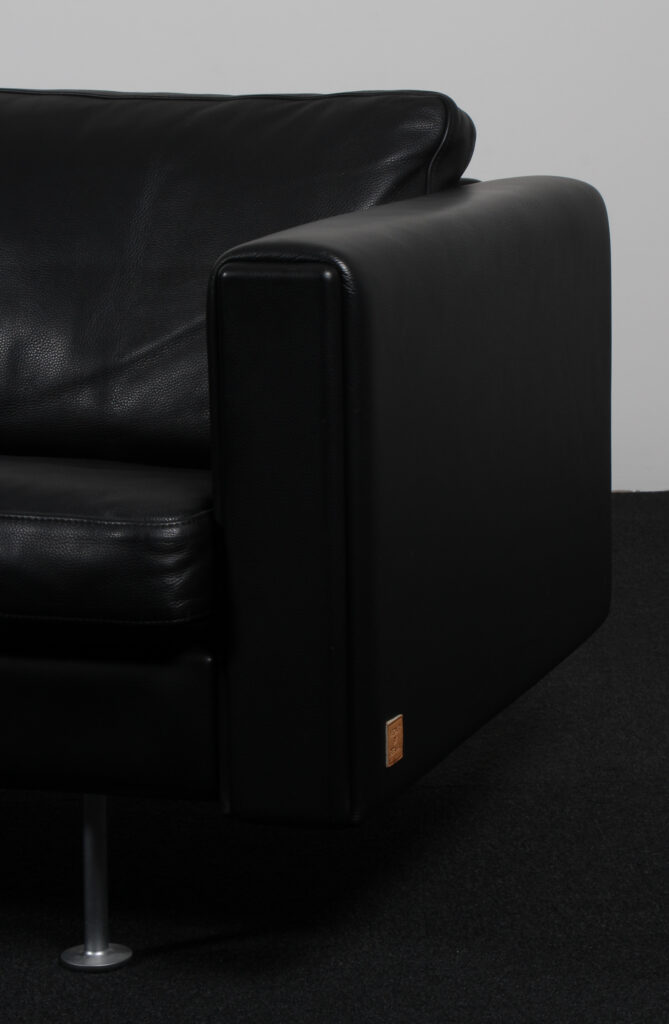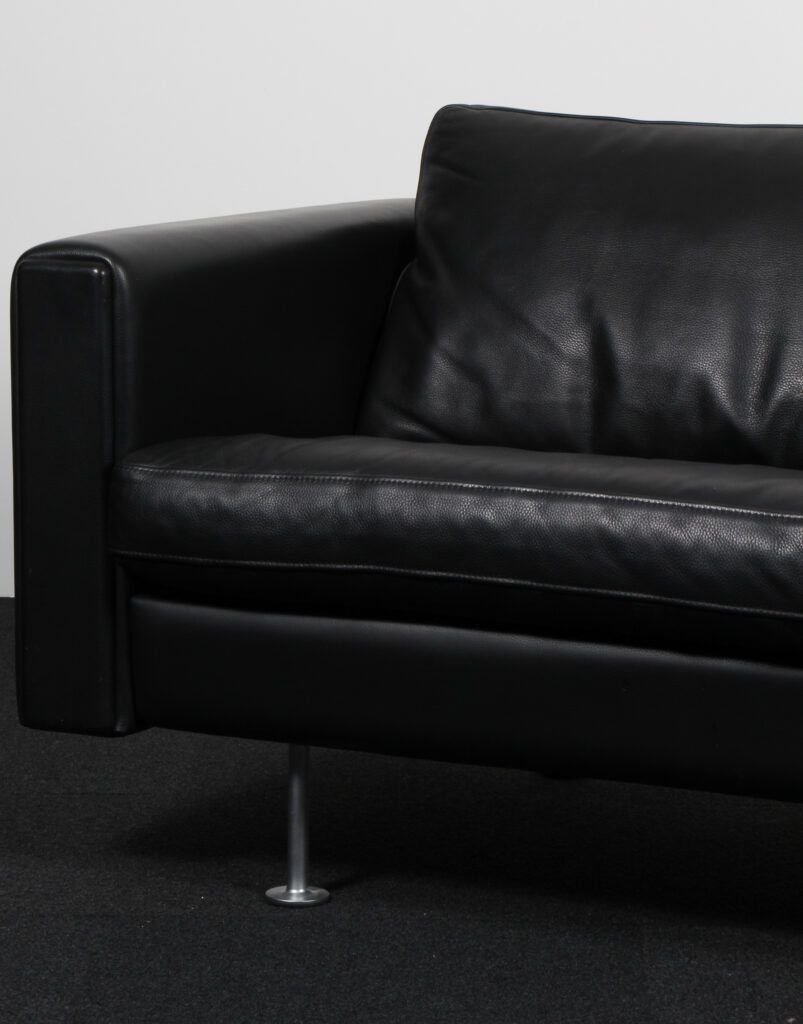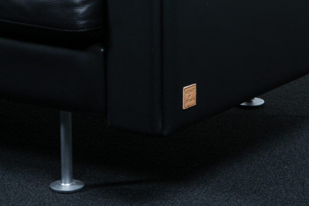 Hans J. Wegner 2½ personers sofa. Original betrukket med sort læder. Ben af børstet stål. Model Century 2000, fremstillet hos Getama. H. 70/41 B. 190 D. 85 cm.