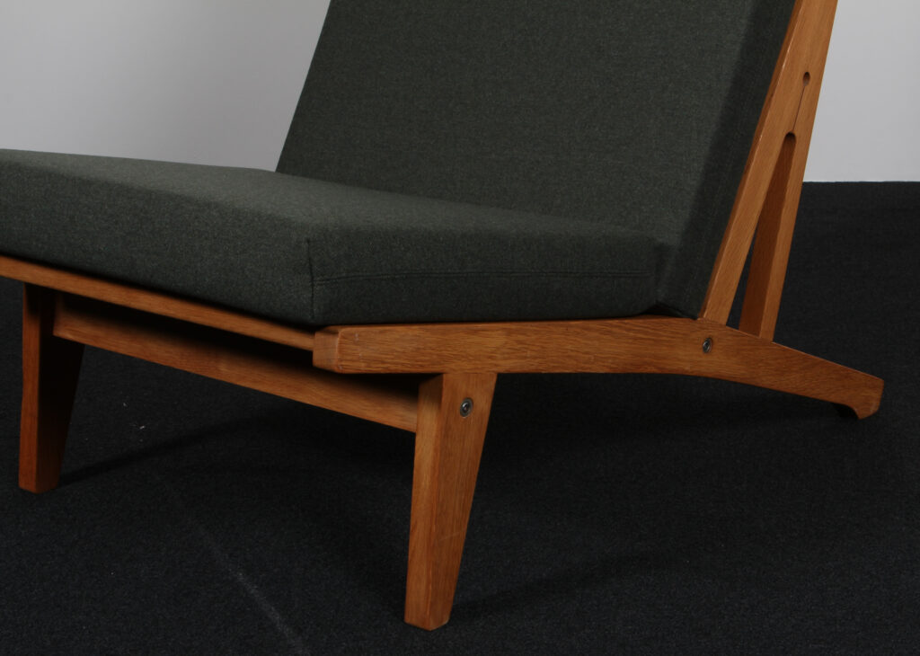 Hans J. Wegner højrygget lænestol model GE375, eg og Uld