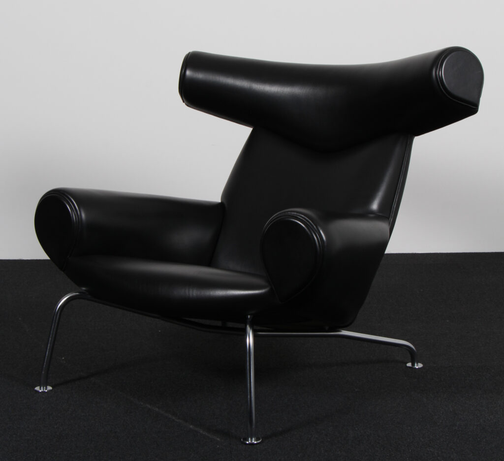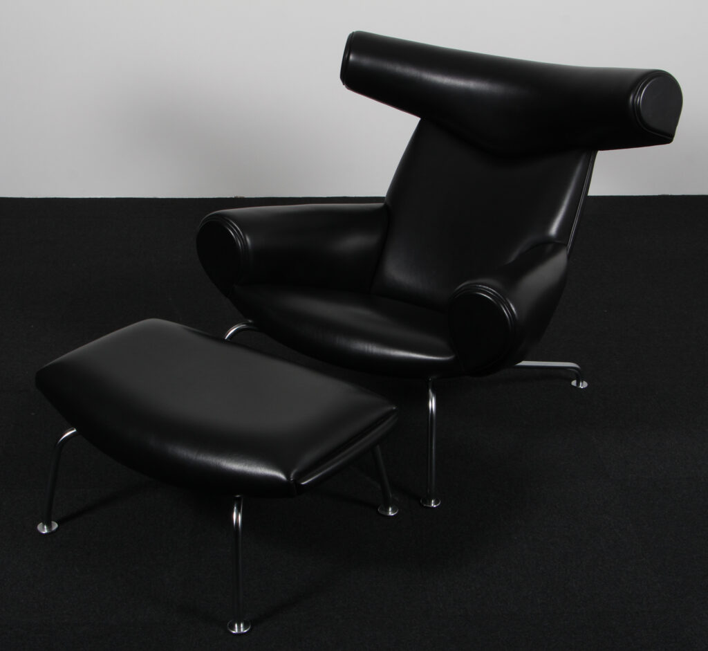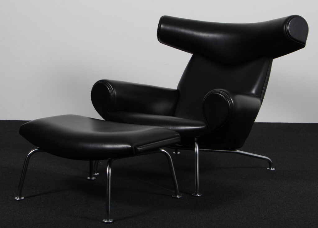 Hans J. Wegner Ox Chair samt skammel, original betrukket