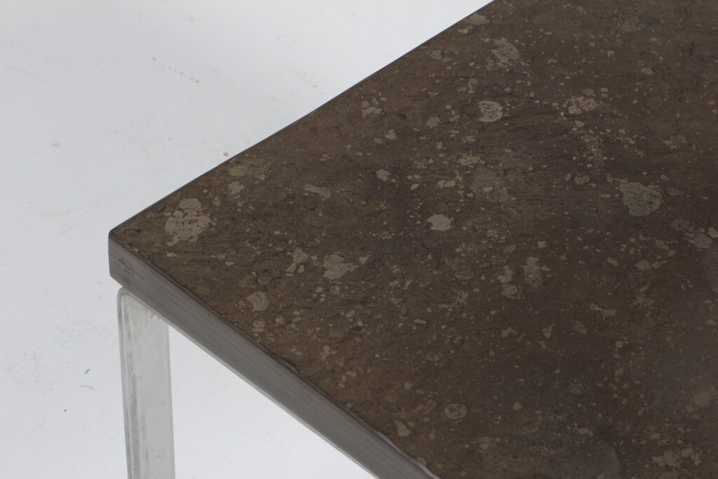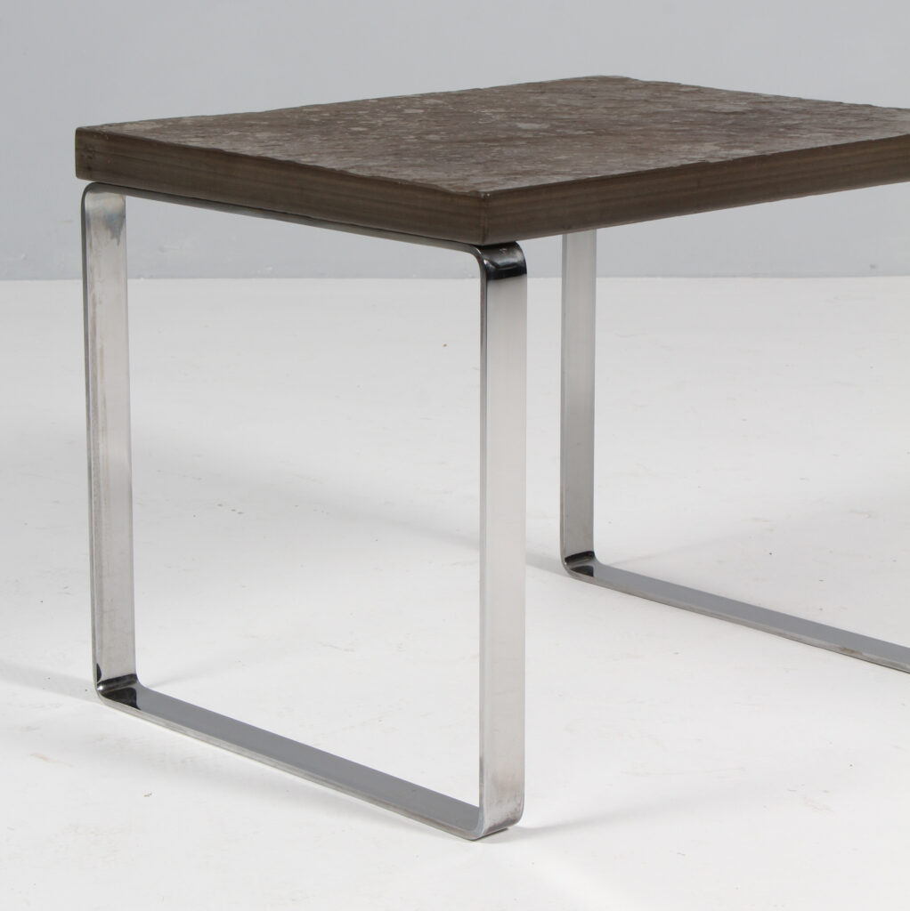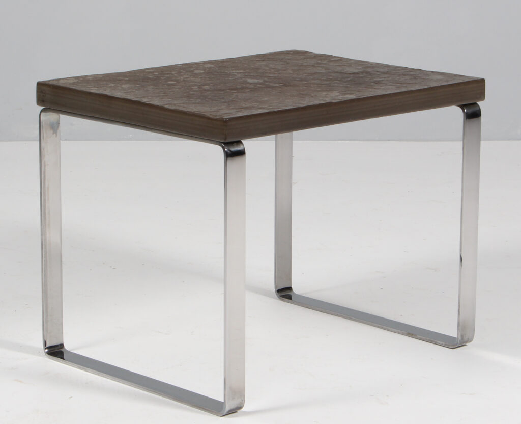 Peter Draenert sidebord med plade af skiffer. Medeformet stel af stål. Model Primus 1062, fremstillet hos Draenert.