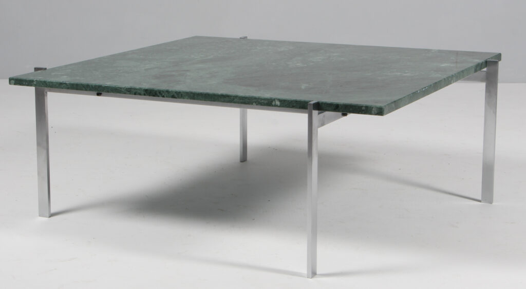 Poul Kjærholm sofabord af Guatemala Verde marmor og stål. Model PK61