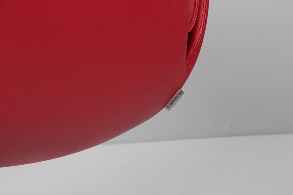 Preben Fabricius og Jørgen Kastholm. Lounge sttole, model ‘Tulip’, betrukket med let patineret indian red læder. Monteret på drejelig trepasfod af aluminium. Fremstillet hos Walter Knoll. H. 89/ 46 B. 68 D. 62 cm. Pris pr stk
