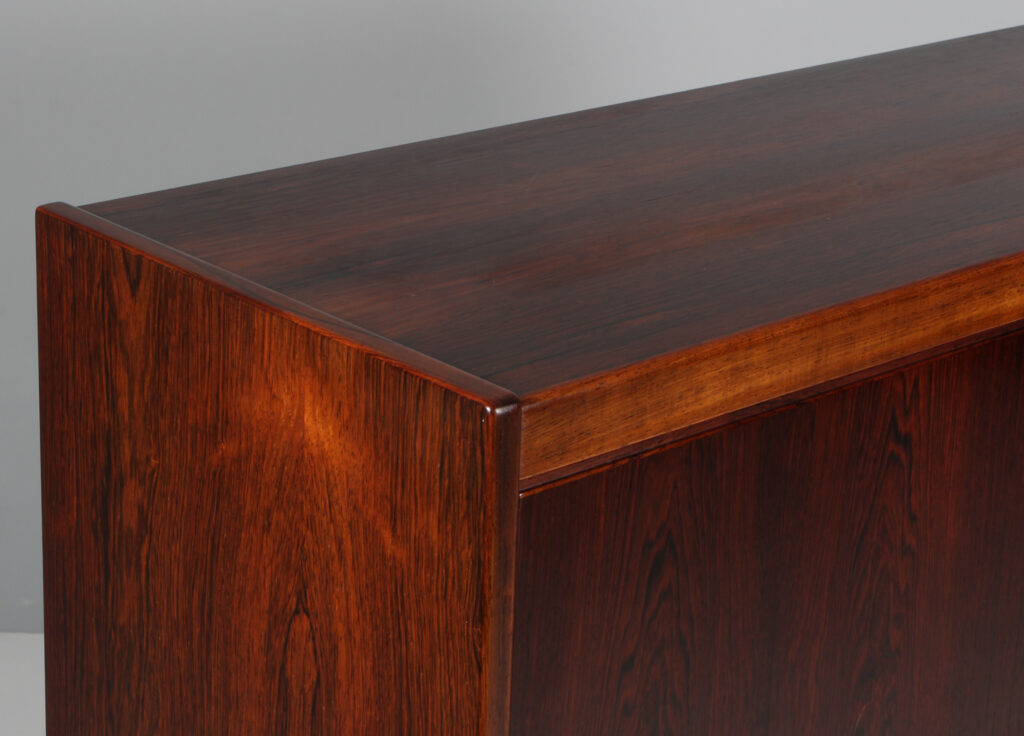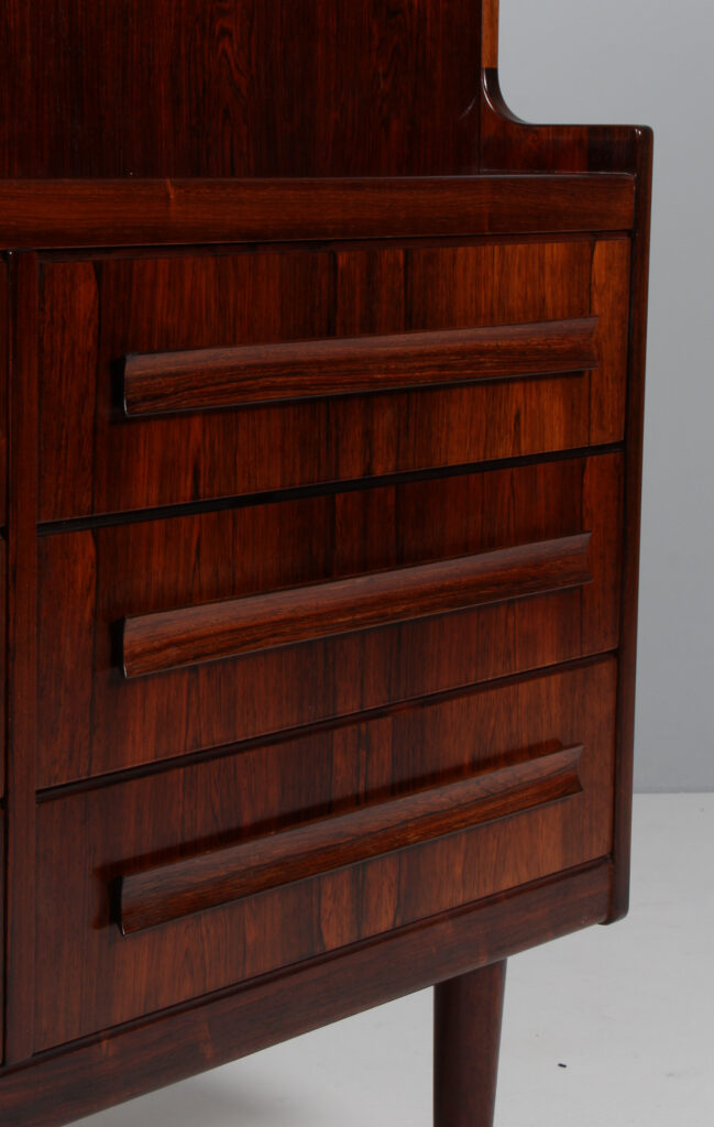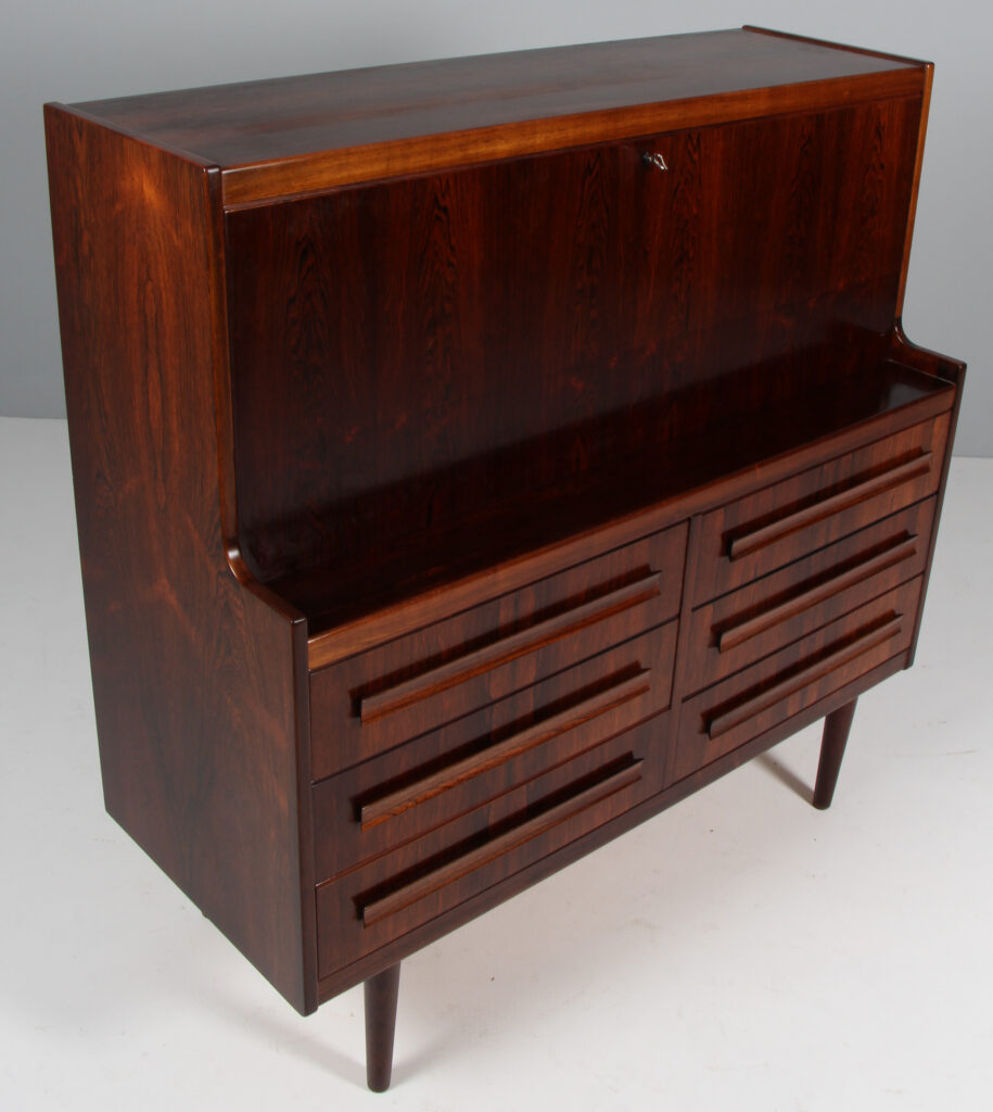Sigfried Omann chatol af palisander. Med skriveklap og skuffer. Fremstillet hos Ørum Møbelfabrik. H. 115 B. 115 D. 48 cm.