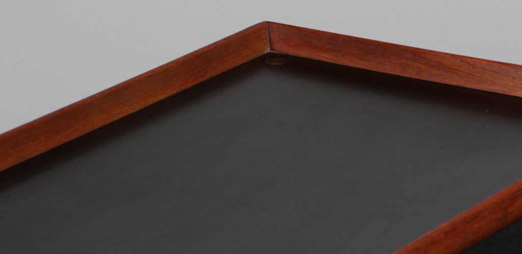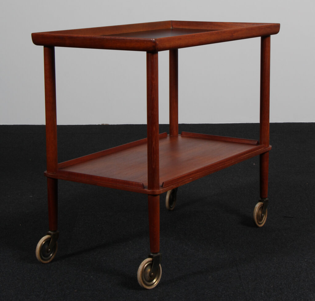 Søborg Serveringsvogn med stel af massiv teak. Plade af formica, med messing detaljer. Fremstillet i 1960’erne. H. 65 B. 41 L. 70 cm.