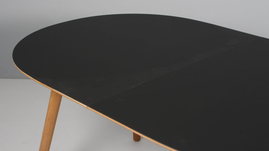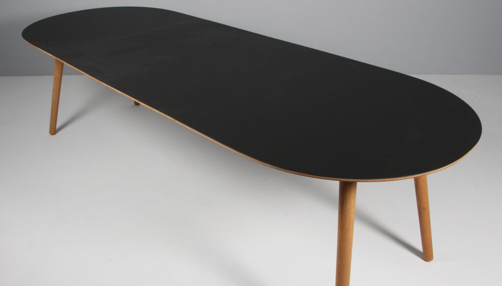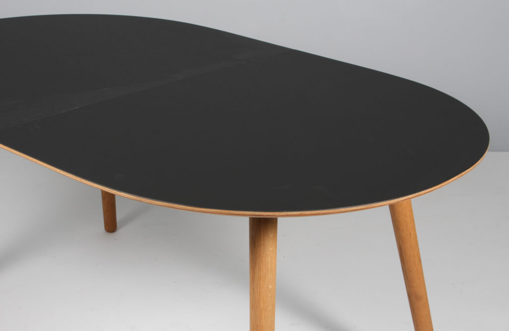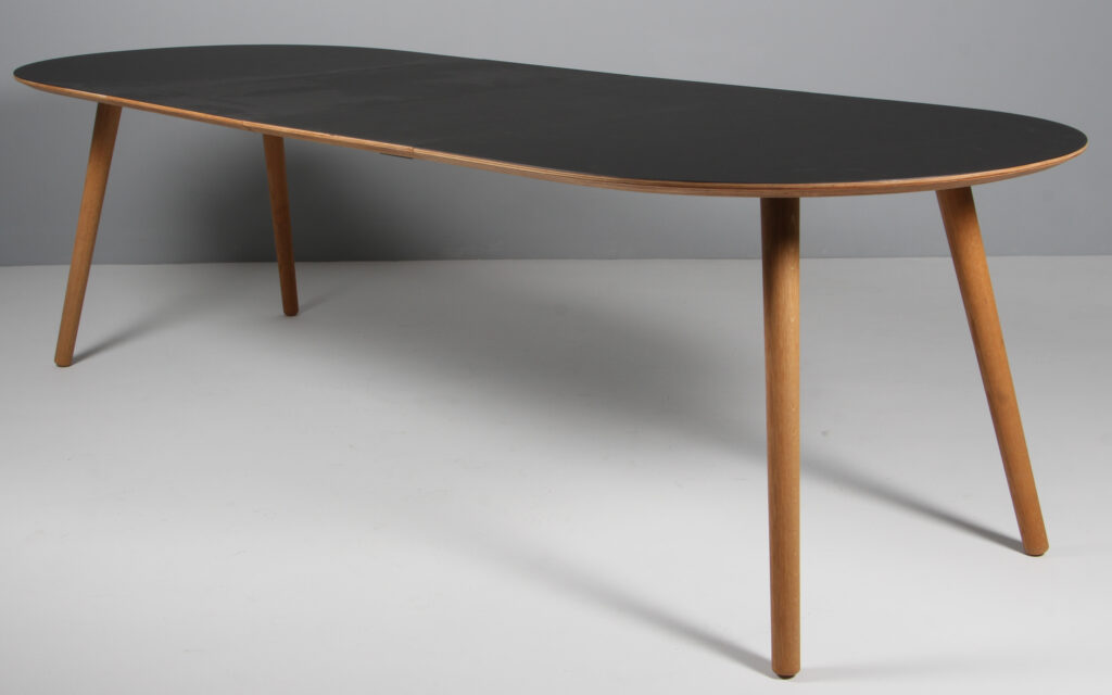 Via Copenhagen spisebord af eg og linoleum. To plader. Fremstillet for Via Copenhagen. H. 74 B. 100 L. 160 +2×50 cm. Udstillingsmodel
