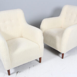 Dansk Møbelsnedker, par overpolstrede lænestole med lammeuld. 1940’erne