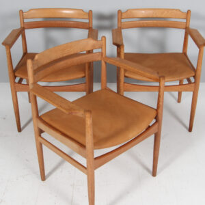 Hans J. Wegner lænestole model GE370, eg samt vintage anilin læder